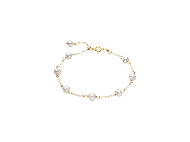 - (1) CHEUKHIU JEWELRY Fashion pearl bracelet with 14K gold chain and natural pearl for women