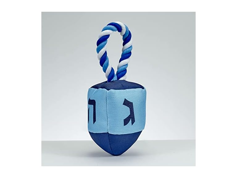 - A Squeaker in a Blue Dreidel. Made of Oxford, and Rope for Unlimited Play! Try Me Feature