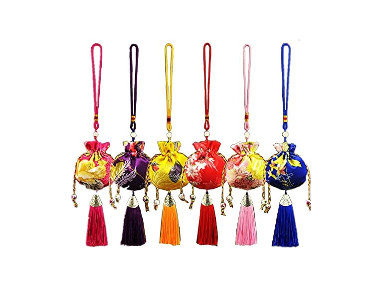 - (1) Ximkee 6pcs Chinese Sachet Silk Brocade Coin Bags Pouches with Drawstring Jewelry Gift Bag Candy Sachet Pouch Small Chinese Embroidered Organizers Pocket for Women Girls Dice Necklaces Earrings Bracelets