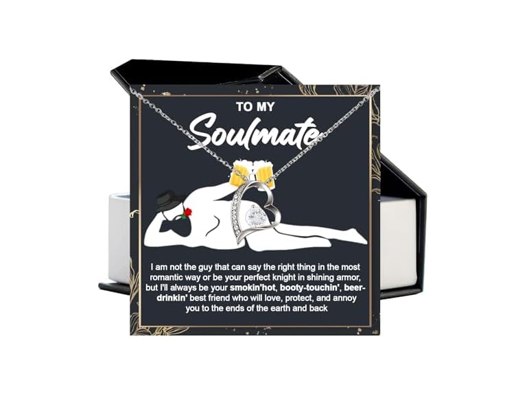- (1) Chiside To My Soulmate Necklace For Women, Wife Necklace From Husband, Christmas Valentines Birthday Gift For Wife, Funny Gifts For Girlfriend, Anniversary Necklaces With Message Card For Soulmate