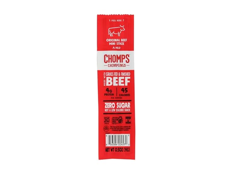- (1) CHOMPS Chomplings Snack Size Grass-Fed and Finished Original Beef Mini Snack Sticks 0.5oz 4g Protein, Gluten-Free, Zero Sugar Food, Non-GMO
