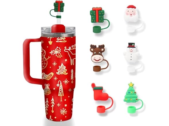 - (1) WUWENKK 6pcs Christmas Straw Covers Cap Toppers Compatible with Stanley 30&40 oz Tumbler Cups, Reusable Cute Silicone Straw Tips Lids Protectors for 0.4 in/10mm Stanley Cups Straws Accessories