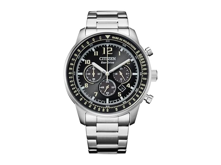 - (1) Citizen Men's Eco-Drive Sport Casual Chronograph Watch, Silver-Tone Stainless Steel Bracelet, Black Dial, Chronograph, Date (Model: CA4500-83E)