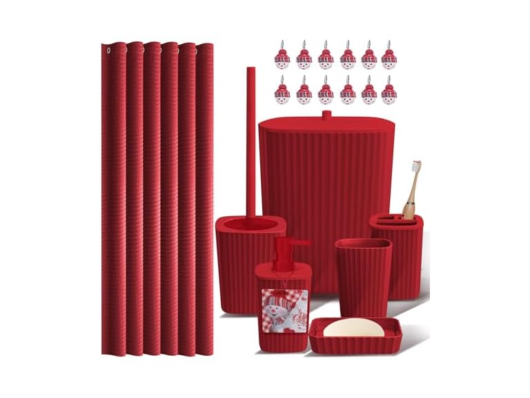 - Giftable Bathroom Decor Set: Stylish, practical, and festive, this bathroom accessories set complete makes a thoughtful gift for family or friends. Its ribbed red design pairs beautifully with other bathroom sets accessories or Christmas decor indoor, creating a cozy holiday retreat.