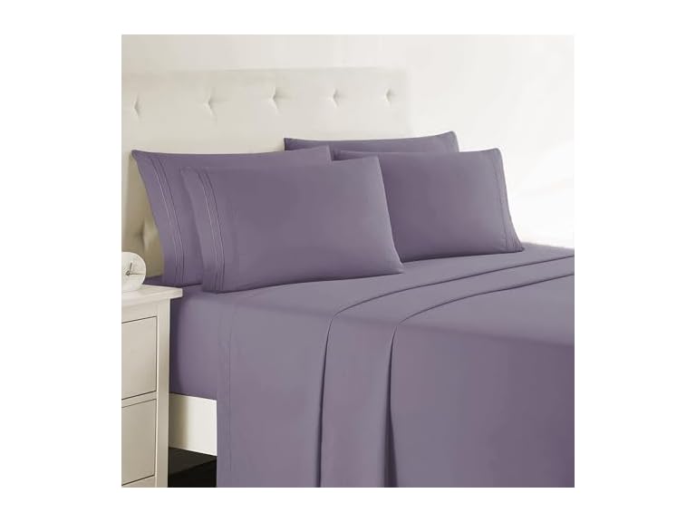 - (1) Clara Clark Queen Sheets - Hotel Luxury 6 Piece Bed Sheets for Queen Size Bed - Soft Bedding Sheets & Pillowcases, Fits Mattress up to 16 inch deep. Queen, Grayish Purple