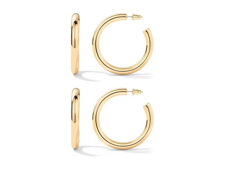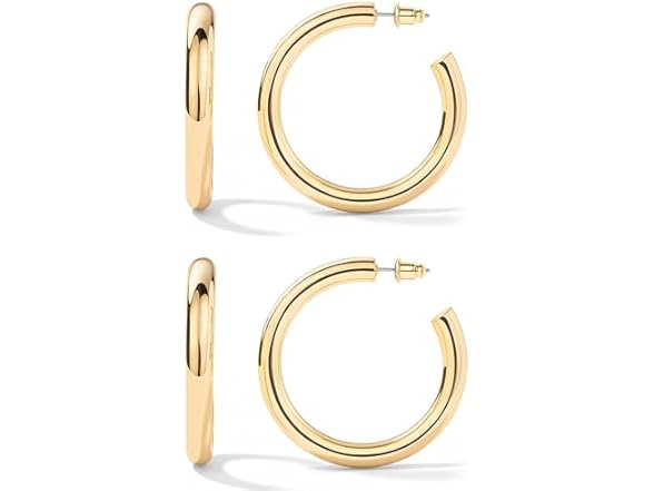 - (1) Claro Clivo 14K Yellow Gold-Plated, Lightweight, Chunky, Open Hoop Earrings For Women (50MM Hoop, 4.5MM Thick, Stainless Steel Pin, 2 Pairs)