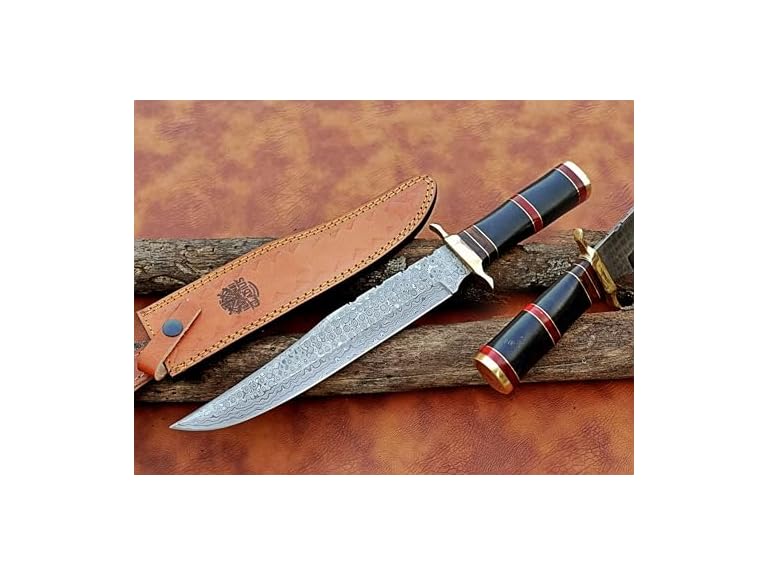 - (1) GLADIUS CRAFTS | Classic 15-Inch Damascus Bowie Knife -10-inch Fixed Blade with 5 inch Elegant Wood and Brass Handle for Hunting, Camping and Self-Defense