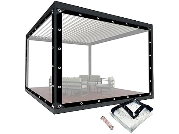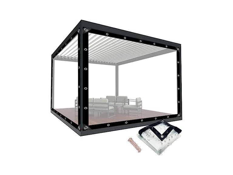- TRANSPARENT TARPAULIN COVER - Tarpaulin is suitable for hanging on the patio, porch or balcony in All seasons. In winter which can keep out cold rain and snow. It's thick 0.14mm, still allowing light. You can see the outdoor scenery without going out