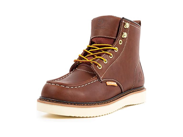 - (1) Clitenk Work Boots Men MOC TOE, Soft Toe 6" Full Grain Leather Breathable Water Resistant, Non Slip Wedge Comfortable Boots LightWeight 12