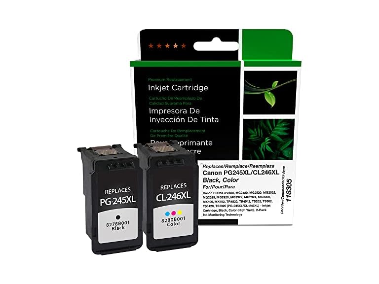 - (1) Clover Remanufactured High Yield Ink Cartridges Replacement for Canon 8278B005AA (PG-245XL/CL-246XL) | Black & Color 2 Pack XL