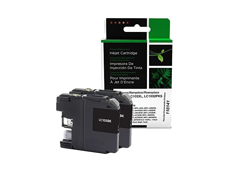 - (1) Clover Replacement Ink Cartridges for Brother LC103XL| Black 2-Pack