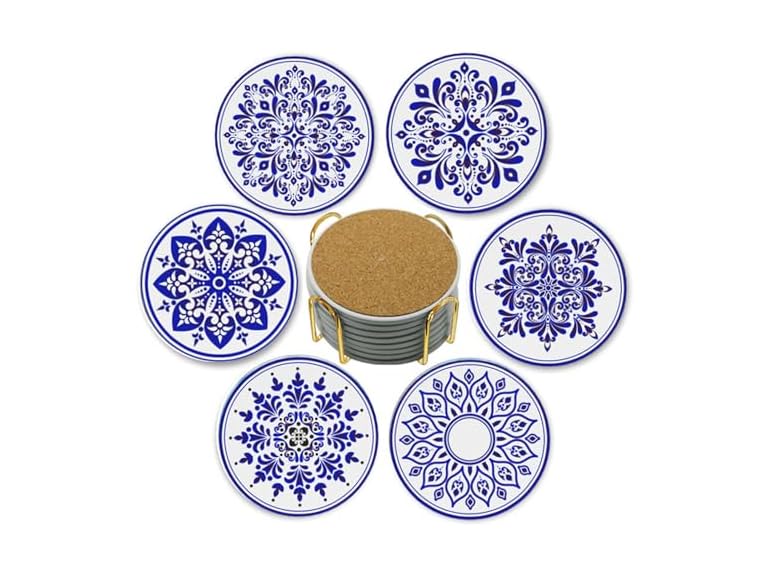 - 🎁CREATIVE DECORATIONS & FASHIONABLE GIFT-Unique ceramic design, this coasters make a real statement piece of art, adding a touch of elegance to any setting; beautiful blue and white porcelain pattern design, intricate but fashionable, is great for office, cafe, study room, bedroom and so on; With vintage blue style pattern, they are a unique gift suitable for housewarming party, family and friends, birthdays, Christmas and so on.