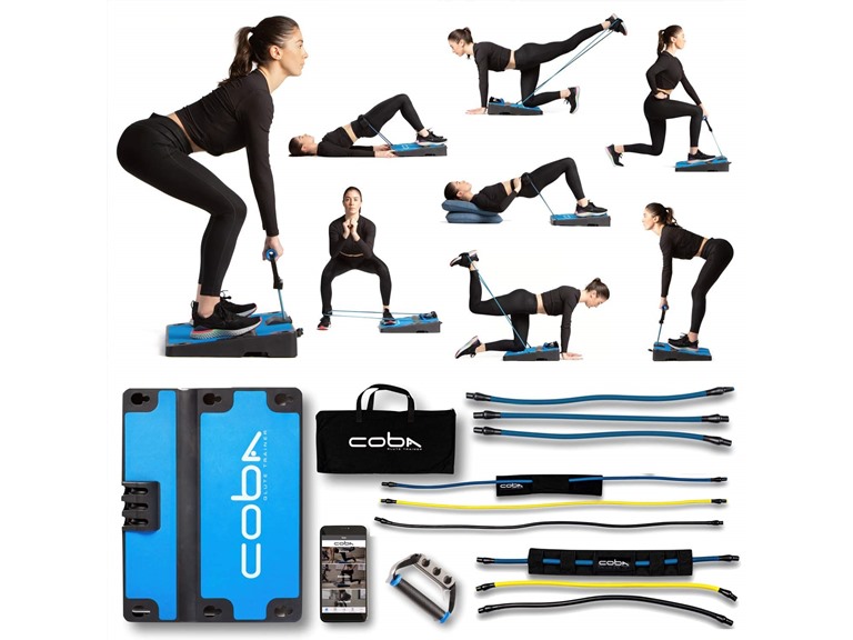 - In the Box: (1) COBA Board Body Trainer - Full Home Workout System, Core, Booty, Arm & Glute Exercise Machine, Portable Home Gym Full Body Booty Band Trainer with Free Videos