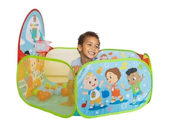 - (1) CoComelon Playground Ball Pit, Pop Up Tent with 25 Play Balls and Basketball Hoop, Toddlers 18M+