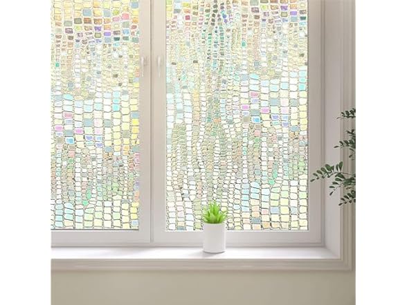 - (1) CODOBON 3D Rainbow Window Film, Frosted Privacy Glass Window Film, Vinyl Decorative Window Decals, Anti-UV Static Clings No-Glue Removable Window Sticker for Home Living Room (17.5 x 157.4 inch)