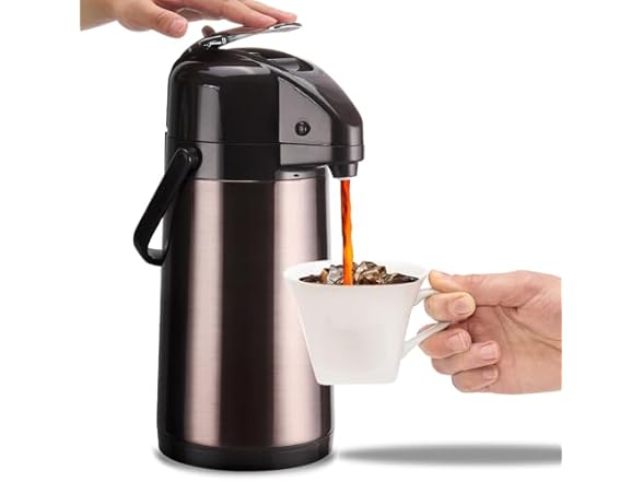 - Durable, Professional Build: Designed to mimic the durability of restaurant-grade dispensers, this coffee airpot features a sturdy structure, including a reinforced lid and mechanism for long-lasting use. Its shorter height provides added stability, preventing tipping or wobbling, even in crowded spaces. A perfect choice for coffee lovers and those who host large gatherings with hot beverages.