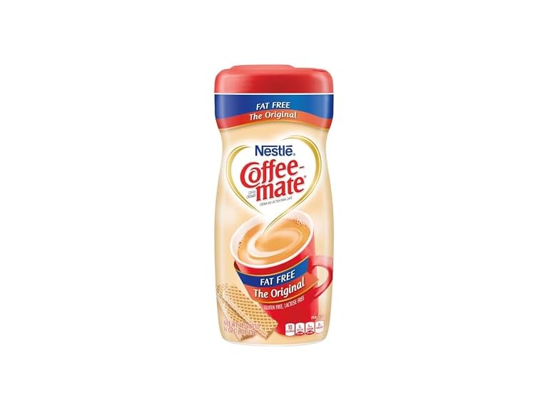 - Coffee Mate 30622 The Original Fat Free 16 oz. Coffee Creamer (Pack of 2); Stir in the Rich, Indulgent Taste Anytime for a Classic Cup That's Non-dairy, Lactose-Free, Cholesterol-Free & Gluten-Free