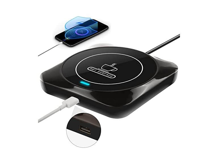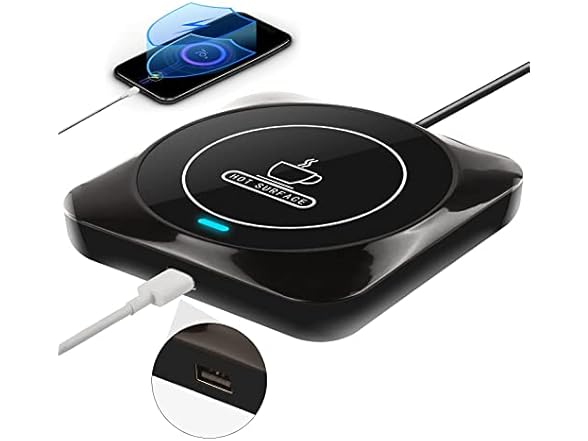 - USB WIRED CHARGING FUNCTION: The USB mug warmer can not only warm your drinks, but also can charge your phones, cup warmer is corded only, but the added USB output port can use a charging cable to connect to your mobile phone (Applicable to iPhone cable). Make your life more warm and convenient.