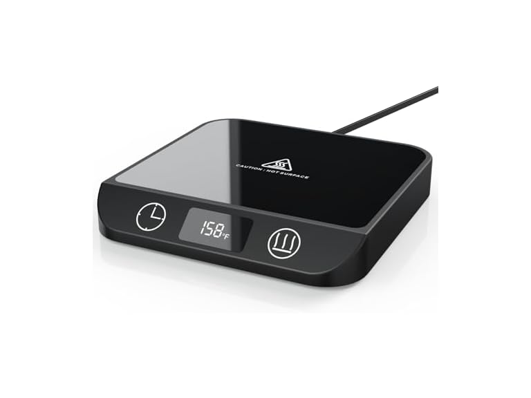 - 【Smart Timer & Comprehensive Safety Design】Set it and forget it with confidence. The default 4-hour auto-shutoff and programmable 1-12 hour timer conserve energy and provide peace of mind during long workdays, deep study sessions, or relaxing moments at home. Thoughtful Safety Design: Features an extra physical switch, unlike touch-only warmers, to ensure activation only when intended. This makes it ideal for worry-free use on an office desk, a study desk, a bedside table, and anywhere else you need it