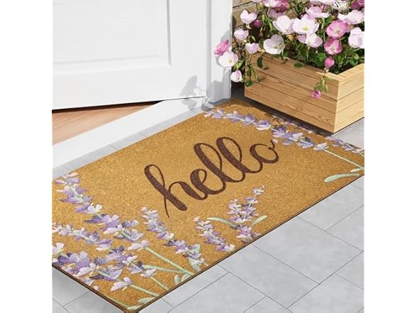 - (1) Door Mat Welcome Outdoor Mat: Artificial Coir Doormat for Outdoor Outside Indoor Entrance - Front Door Mat Non-Slip Backing Durable Fall Mat for Home Porch Entryway Floor (Hello Floral, 17"x 30")