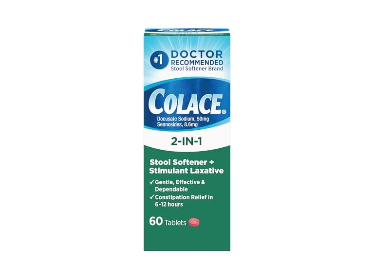 - GENTLY SOFTENS STOOL: Colace Stool Softener relieves many symptoms of occasional constipation, including infrequent or irregular bowel movements, straining during bowel movements & hard dry stools.
