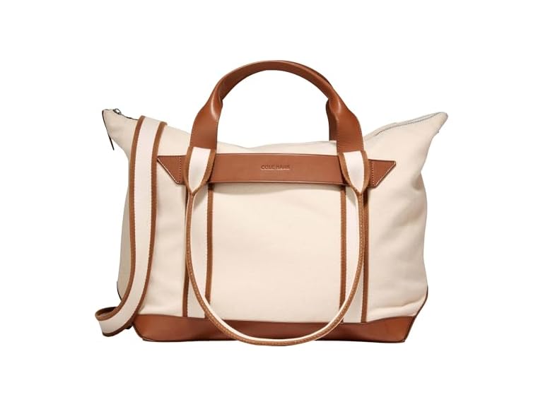 Our Total Tote starts from the shape of a traditional boat tote ,then upgrades the canvas and reinforces it with leather on all the places—bottom, handles—where you need it most. The result: A good-looking bag that's just big enough to hold your laptop and still small enough to toss in that overhead compartment. . Coated canvas iwith leather handles, bottom, and trim in Irish Coffee; zip closure. 13.5"H x 20"W x 8"D. Removable shoulder strap with 30" drop; 4.5" handle drop. Padded neoprene sleeve fits 16" laptop. Back slip pocket. Trolley pass. Tether with key clip