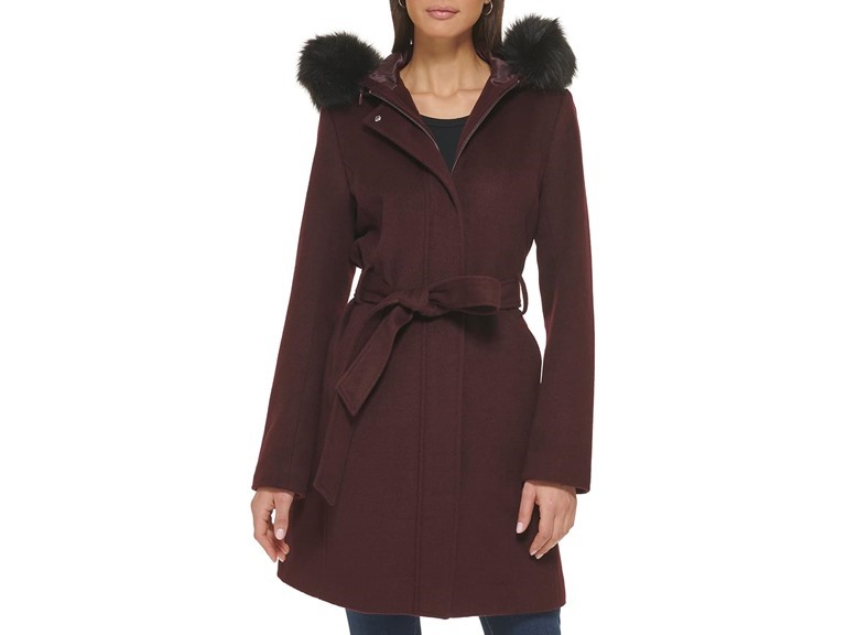 - (1) Cole Haan Women's Hooded Coat Slick Wool with Detatchable Faux Fur Trim