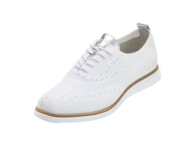 - (1) Cole Haan womens Originalgrand Stitchlite Wingtip Oxford Flat, Optic White Knit/Optic White, 8 US