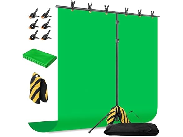 - 📦【Package Contents】:1 x Backdrop Stand Kit ,1 xGreen Backdrop, 6x Spring Clamps ,1 x Carry Bag, 1 x Sand Bag.