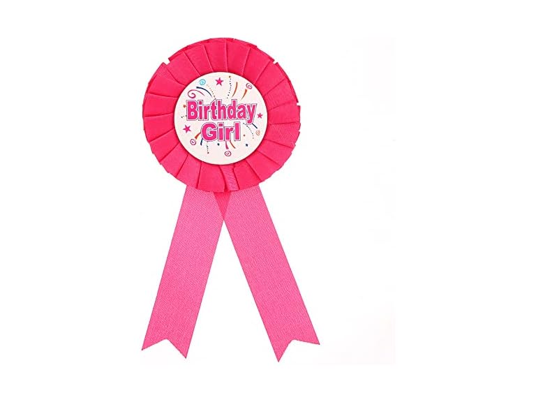 - (1) COLORFUL BLING Birthday badge Happy Birthday Princess Ribbon Badge Boy Girl Birthday brooch Birthday Party pin-Rose pink