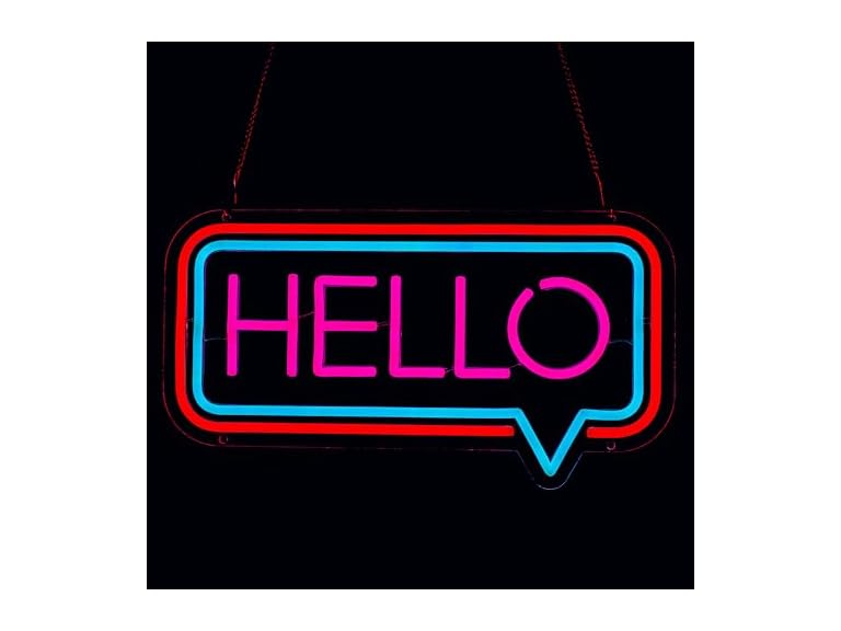 - (1) Colourthe Hello Neon Sign,15.7 Inch Giant Hello Light up Sign - Cool Neon Light Wall Decor for Home Karaoke Bar Restaurant Pub Cafe Salon Game Room, USB Powered (15.7 x 8.7 inches, 1Pack)