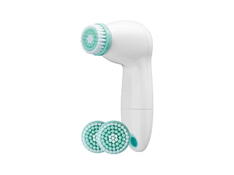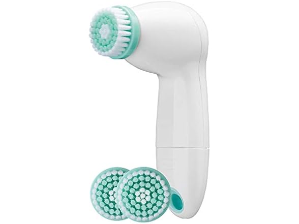 - New Spin On Clean: Our 2 speed facial cleansing brush features a 360° rotating brush head, is water resistant, and includes 3 facial brush attachments to gently exfoliate + cleanse. Battery Operated ~ requires 2 AA Batteries (not included)
