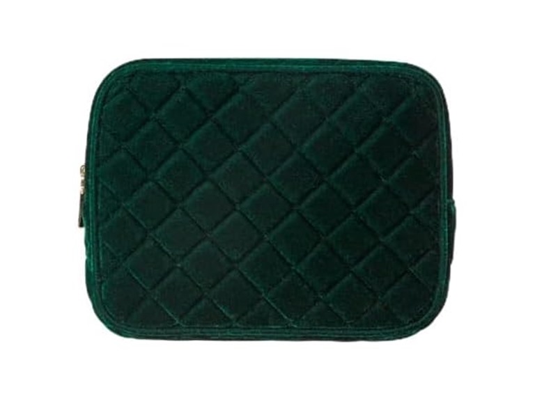 - CONAIR EMERALD GREEN VELVET DOUBLE ZIP ORGANIZER: Spacious travel bag with stylish diamond-quilted pattern.