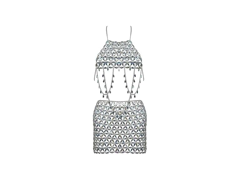 - (1) Connie Cloris Womens Sexy One Piece Body Chains Crystal Tassel Bikini Beach Club Body Jewelry (022-Silvery-Suit)
