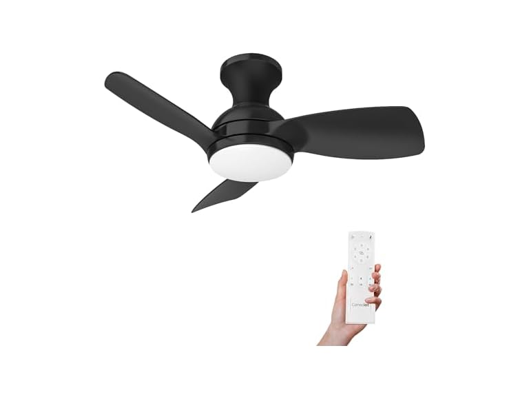 In the Box: (1) Consciot Ceiling Fan With Lights 30 Inch, Kids Ceiling Fan Black Modern, Flush Mount, Reversible Quiet DC Motor, 6 Speed, Dimmable