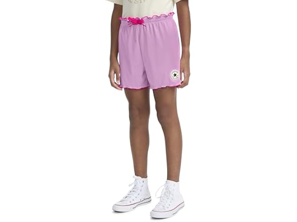 - FLOWY FRESH: These Converse girls' shorts feature a lovely flowy cut that moves beautifully with every step, while the purled hemlines add a whimsy detail.