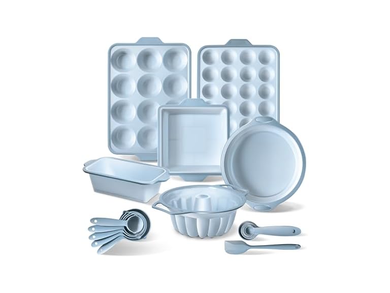 - COOK WITH COLOR 17 Pc. Silicone Baking Pan Set - Non-Stick & Easy Clean Silicone Muffin Pans for Baking with Sturdy Metal Frame for Stability, Flexible Cake Molds, Includes Measuring Cups and Spoons