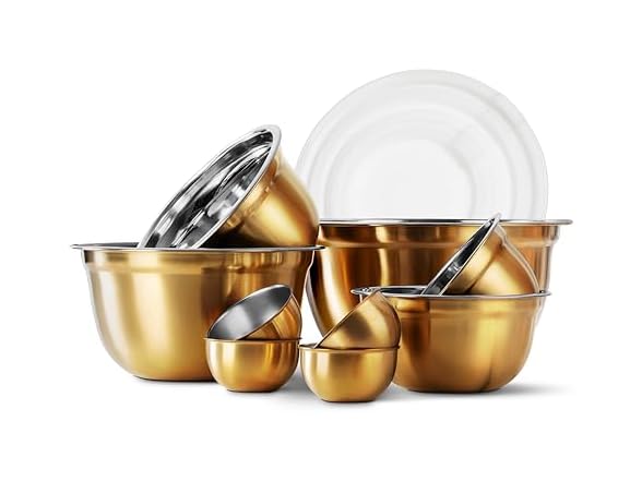 - Elegance Meets Function – These beautiful stainless steel mixing bowls with lids add style and function to your kitchen. Perfect for meal prep, freezer, serving, or display, they elevate everyday cooking & baking with a touch of sophistication.