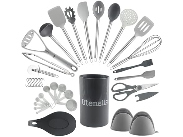 - COOK WITH COLOR Silicone Cooking Utensils, Kitchen Utensil Set, Easy to Clean Silicone Kitchen Utensils, Cooking Utensils for Nonstick Cookware, Kitchen Gadgets Set, 38 Piece, Gray