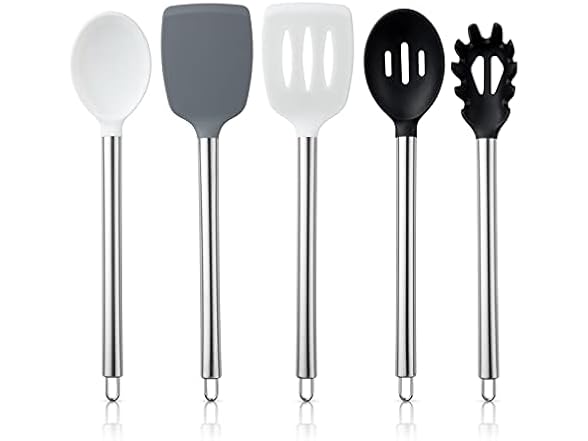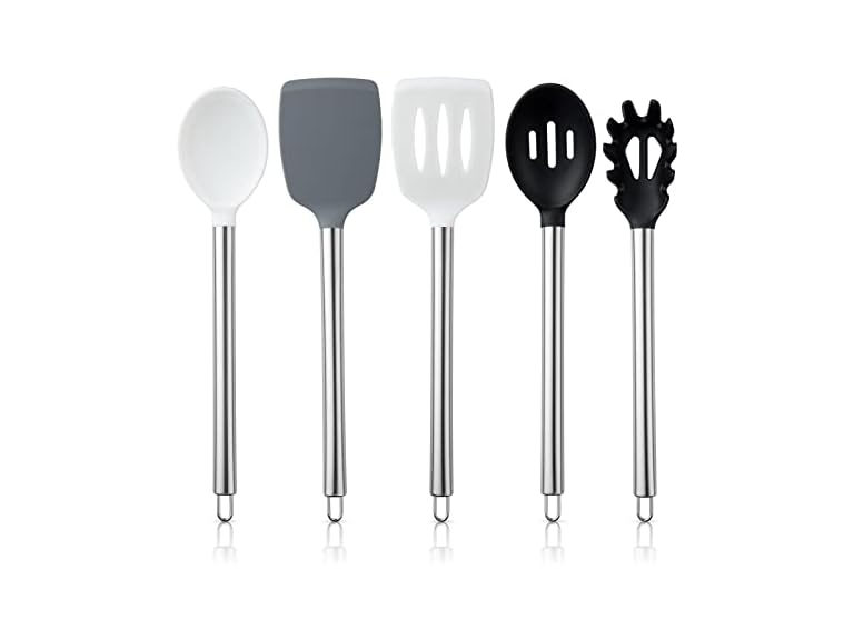 - COOK WITH COLOR 5-Piece Silicone Cooking Utensils, Kitchen Utensil Set, Easy to Clean Silicone Kitchen Utensils, Cooking Utensils for Nonstick Cookware, Kitchen Gadgets Set