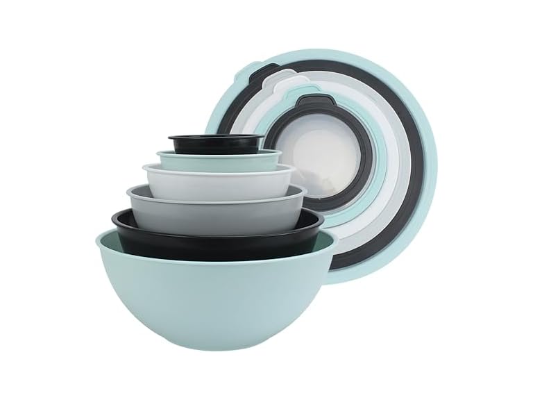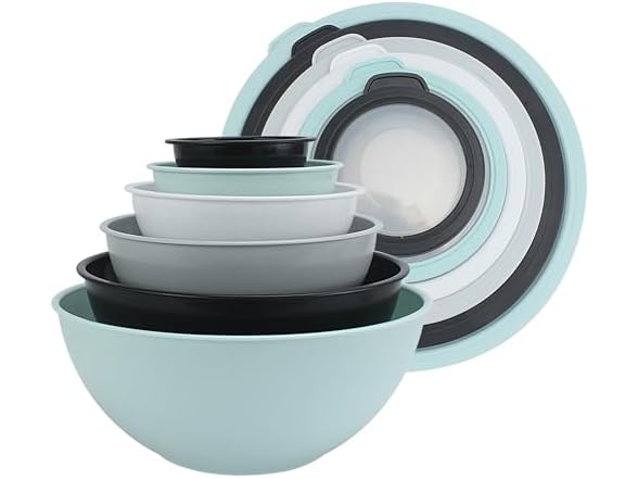 - COOK WITH COLOR Mixing Bowls with TPR Lids - 12 Piece Plastic Nesting Bowls Set includes 6 Prep Bowls and 6 Lids, Microwave Safe Mixing Bowl Set