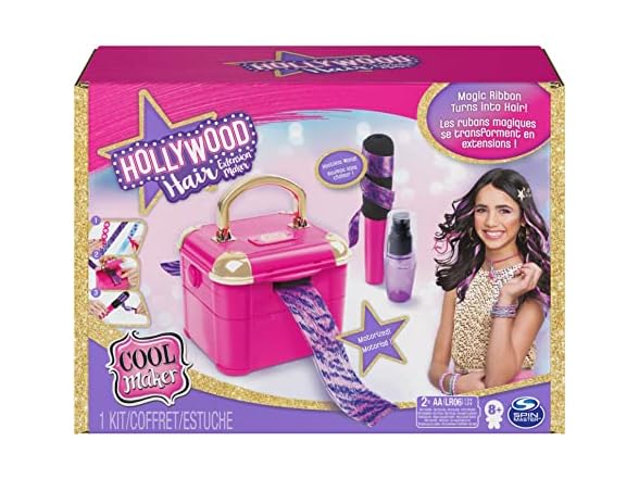 - DIY HAIR FASHION KIT: The Amazon exclusive Cool Maker Hollywood Hair Extension Maker is for kids aged 8 and up. 2 AA batteries not included. Create and style endless looks with Hollywood Hair