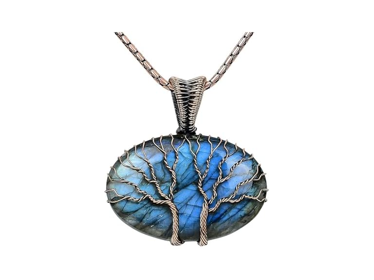 • (1) Copperie Tree Of Life Labradorite Gemstone Pendant Copper Wire Wrapped Jewelry Necklace - 20" Chain