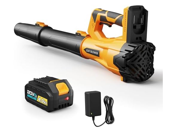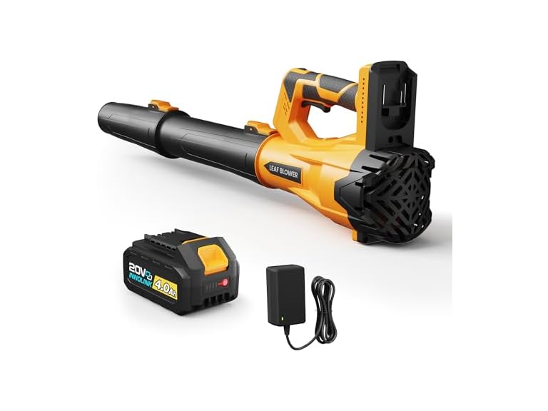 - (1) Cordless Leaf Blower with 4.0Ah Battery and Charger, Powerful Electric Leaf Blowers with 6 Adjustable Wind Speed, Lightweight Portable Leaf Cleaner for Patio, Lawn Care, Leaves Dust Cleaning