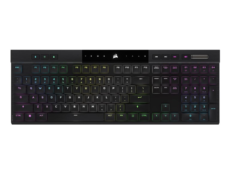 Corsair K100 AIR Wireless RGB Mechanical Gaming Keyboard - Ultra-Thin, Sub-1ms Slipstream, Low-Latency Bluetooth, Cherry MX Ultra Low Profile Keyswitches - NA Layout, QWERTY - Black