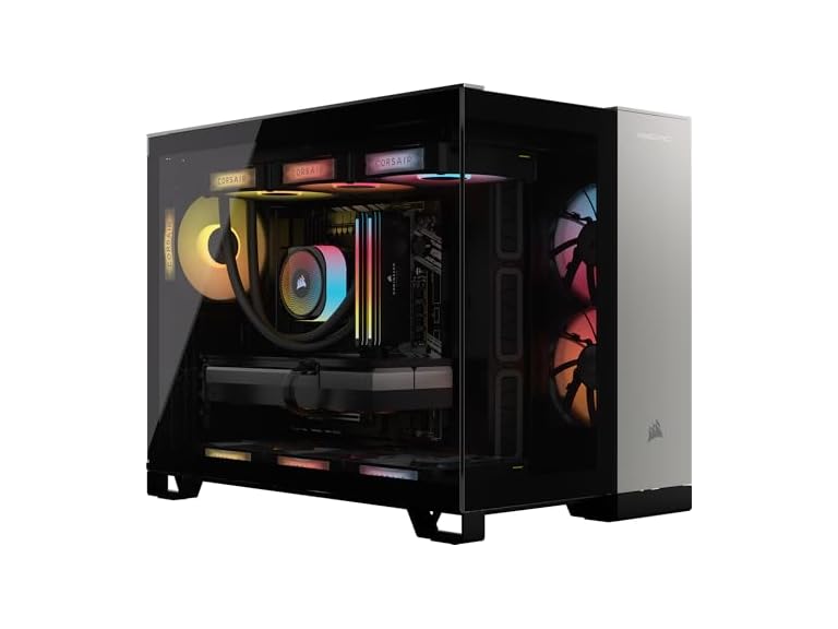 - CORSAIR iCUE LINK 2500X RGB Dual Chamber Case: Offers stunning views of your PC’s internals through tempered glass panels, along with impressive cooling performance from side, rear, roof, and bottom fans