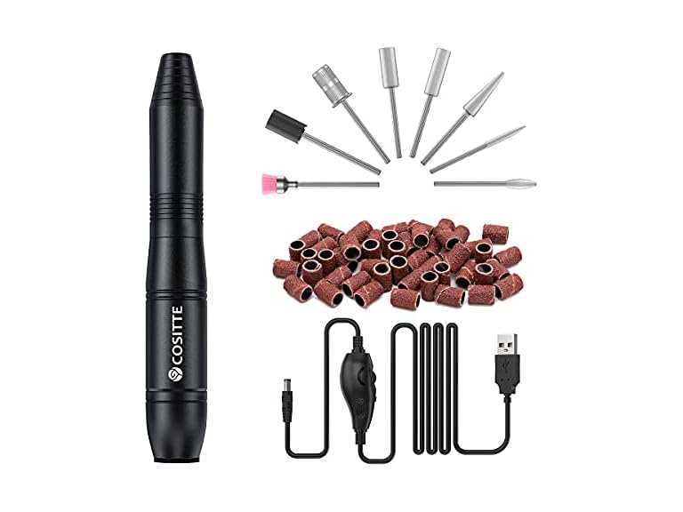 - COSITTE Electric Nail Drill, USB Electric Nail Drill Machine for Acrylic Nails, Portable Electrical Nail File Polishing Tool Manicure Pedicure Efile Nail Supplies for Home and Salon Use Black