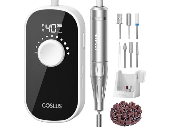 - Professional Research and development, Trusted Quality: The COSLUS E51 high-torque nail drill, crafted by a team of nail artists over three years of dedicated research, delivers an exceptionally stable, smooth, precise, secure grinding thanks to its powerful 40,000 RPM motor and 40-level stepless speed control system. It not only meets professional needs such as acrylic nail trimming and gel polish removal but also, with its user-friendly design, effortlessly caters to 99% of users—from beginners and at-home enthusiasts to professional nail technicians and salons. Truly an all-in-one tool that goes beyond the ordinary.