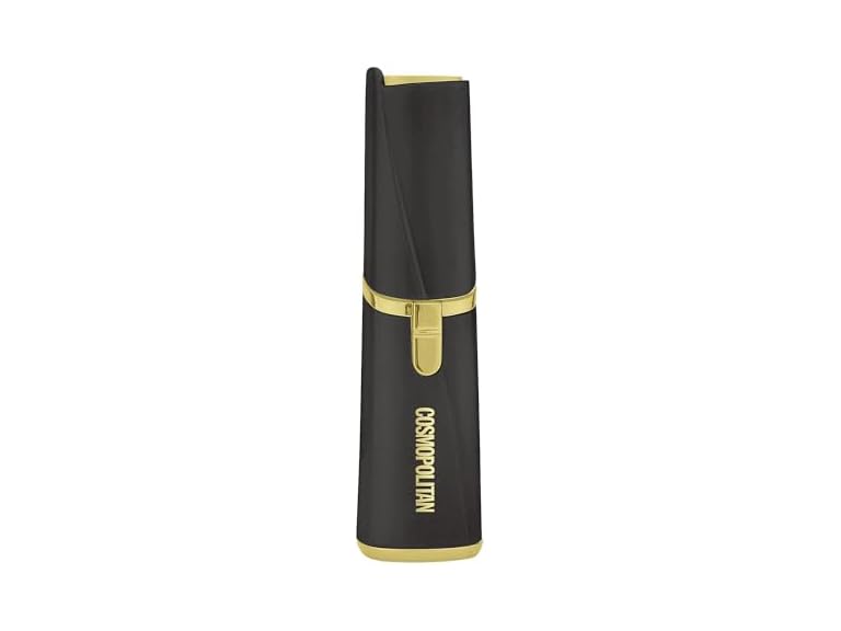 - Cosmopolitan Womens Facial Hair Remover, Face Shaver for Women, Hair Trimmer, Electric Mini Razor with Rotary Design, Ladies Hair Removal Device, Battery Powered with Built-in Light - Black & Gold