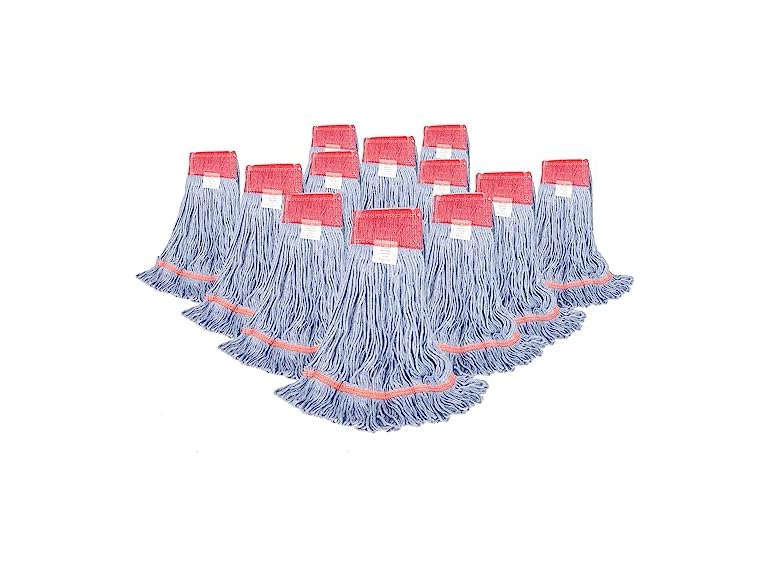 - (1) Hub City Industries Cotton/Synthetic Wet Mop Head, Cleaning Supplies, Replacement Looped End Mop Head, High Absorbency, High Tensile Strength, Launderable, Medium Size, Blue (Pack of 12)